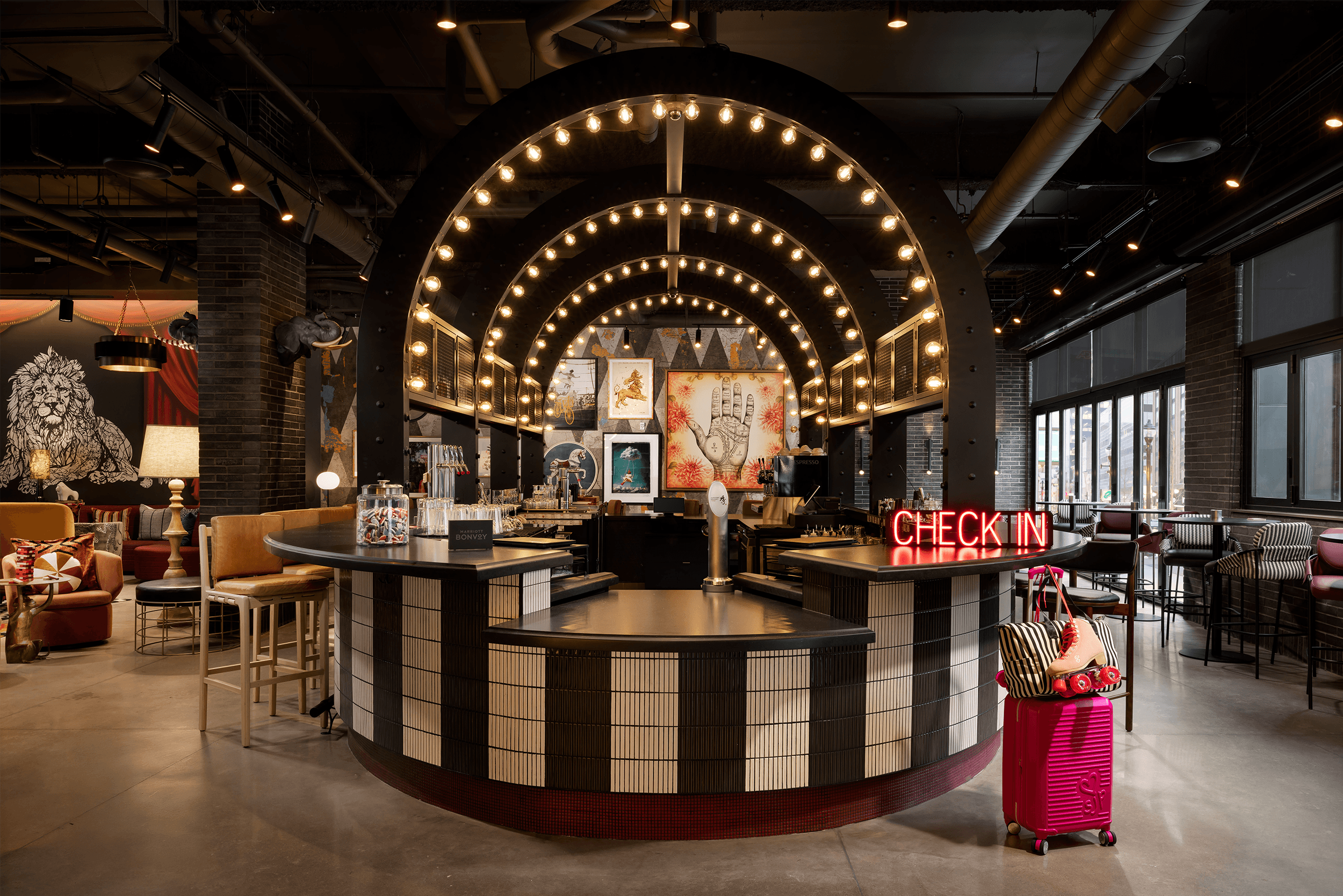 Unexpected and captivating details showcased throughout the lobby encourage sensations of wonder, discovery, and play.