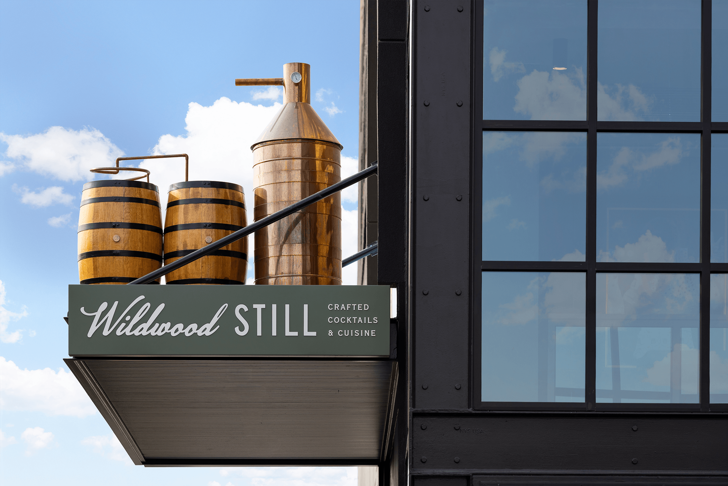 Belly-up, then bottoms-up. Located in downtown Asheville, NC, on the top floor of the Moxy Hotel, Wildwood Still offers a new frontier for craft cocktails and happy hour get-togethers.